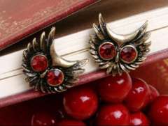 2012 新款 | 复古甜美可爱百搭镶钻大眼猫头鹰 | 耳钉耳环 | 女 | 铜色+红眼