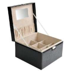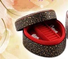 开馨宝带镜子爱心双层首饰盒\化妆盒-黑色凸纹