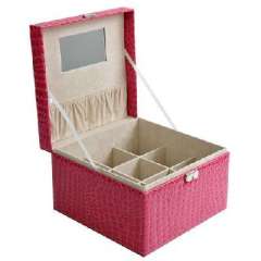开馨宝鳄鱼纹手提式加大格首饰盒\饰品盒\收纳盒-玫红色