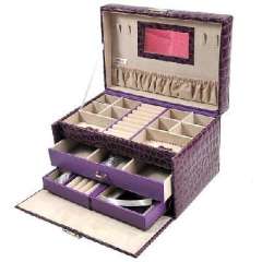开馨宝爱心双层首饰盒\化妆盒\储物盒-紫色鳄鱼纹