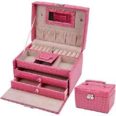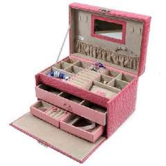 开馨宝高级PU大容量三层首饰盒\饰品收纳盒-粉色