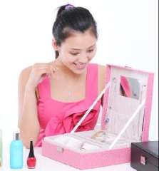 开馨宝带镜子爱心双层首饰盒\化妆盒-白色凸纹