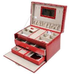 开馨宝鳄鱼纹手提式加大格首饰盒\饰品盒\收纳盒-大红色
