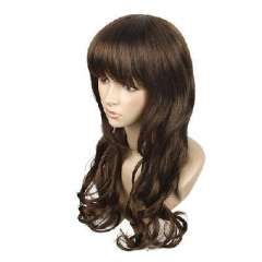咖啡色化纤斜刘海长卷发72cm