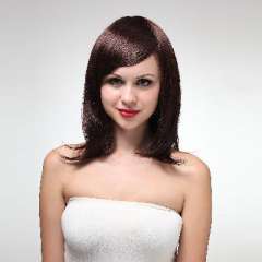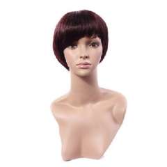 酒红色化纤短发22cm
