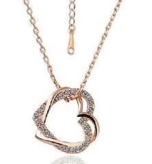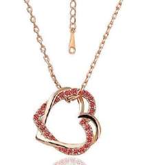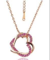 满钻双桃心项链\光面桃心项链-玫红色(2028-2)