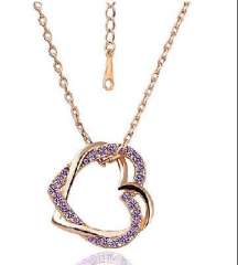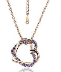 满钻双桃心项链\光面桃心项链-紫色(2028-5)