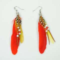 时尚波西米亚风格羽毛耳环 | 深红色