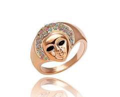 时尚玫瑰金个性头像女款戒指-彩色(8010-1)