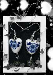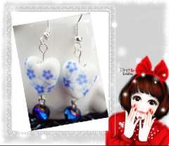 心相印陶瓷珠深蓝耳环
