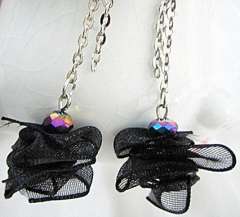 秀丽黑色丝花水晶耳环
