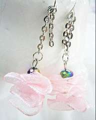 秀丽粉色丝花水晶耳环