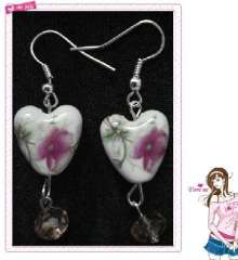 心相印陶瓷珠紫荆花耳环
