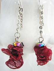 秀丽红色丝花水晶耳环