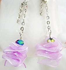 秀丽粉紫色丝花水晶耳环