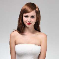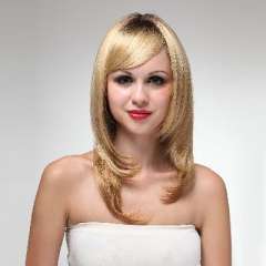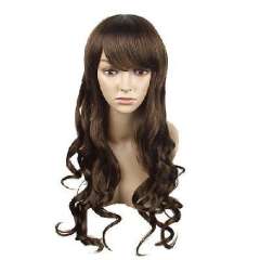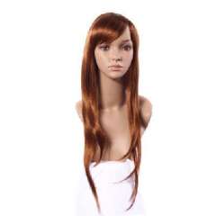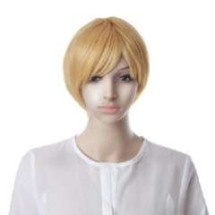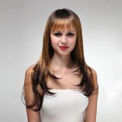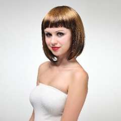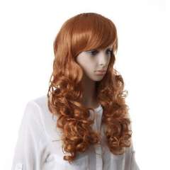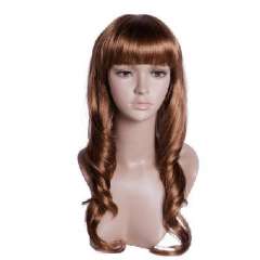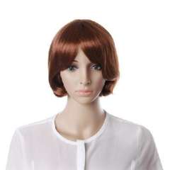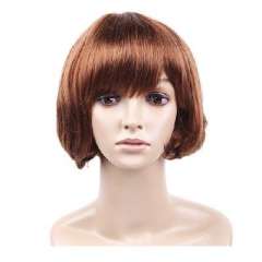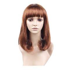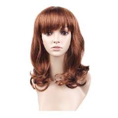亚麻黄化纤齐刘海梨花头卷发42cm