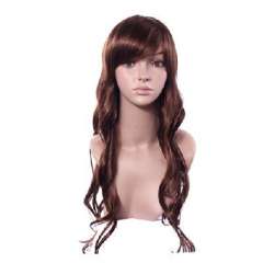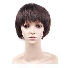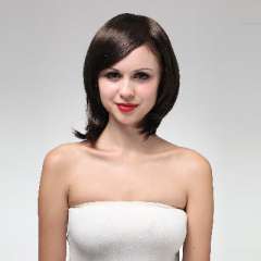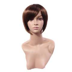 中棕色化纤时尚俏皮斜刘海短发24cm