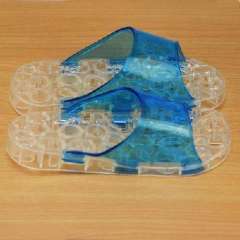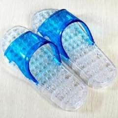 镂空字母底水晶防滑按摩拖鞋--蓝色