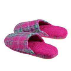 秋冬流行格子情侣居家棉拖鞋\室内防滑地板拖-玫红色