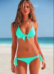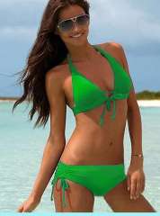 高品质 | 时尚分体挂脖系带 | 蝴蝶结泳衣 | 草绿