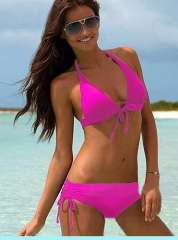 高品质 | 时尚分体挂脖系带 | 蝴蝶结泳衣 | 粉色