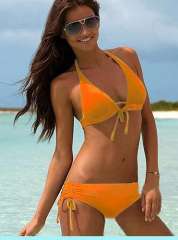 高品质 | 时尚分体挂脖系带 | 蝴蝶结泳衣 | 橙色
