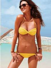 高品质 | 时尚分体挂脖系带泳衣 | 黄色