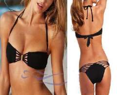 高品质 | 时尚女士挂脖系绳分体泳衣 | 黑色