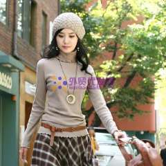 荷叶边打底衫高领Basic shirt high colar long-sleeve women's fashion T-shirt