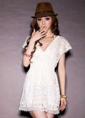 2013新款春夏新款连衣裙韩版女装半透明深V领 | 性感蕾丝短袖连衣裙