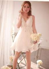 2013新款春装新款女神深V百褶白色雪纺连衣裙礼裙