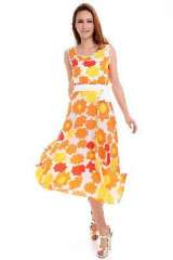 大摆 | 真丝绒背心连衣裙 | 太阳花 | 桔色