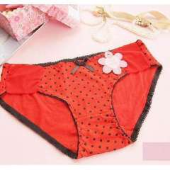 点点蝴蝶结纯棉女士内裤\三角裤-大红色