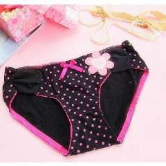 点点蝴蝶结纯棉女士内裤\三角裤-黑色