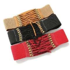 复古铆钉锚固天鹅绒多拉线时尚腰带