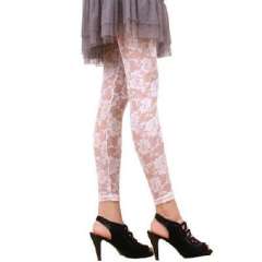 复古玫瑰花蕾丝打底裤袜九分裤-白色(372)