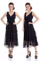 复式雪纺 | 精致大摆 | 荷叶花边 | V领收腰连身裙 | 均码 | 蓝黑色