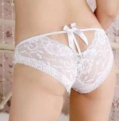 公主蕾丝水钻蝴蝶结深V露股沟性感内裤