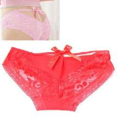 公主蕾丝水钻蝴蝶结深V露股沟性感 | 内裤 | 三角裤 | 红色