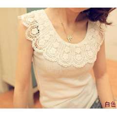 韩版钩花边圆领打底背心\布蕾丝雪花打底衫-白色