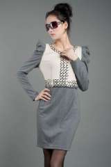 2012秋季新款女装精选长袖连衣裙带串圈装饰M码