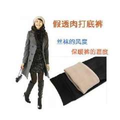 猫抓不破假透肉竹炭双层加厚保暖打底裤-黑色