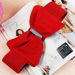 鹿皮绒大蝴蝶结嵌钻加宽松紧带\女士腰带