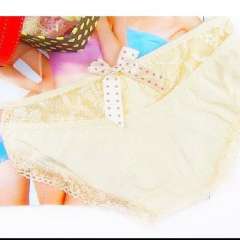 全棉蕾丝无痕镂空蝴蝶结性感公主内裤\女士三角裤-米色
