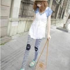 秋冬新款膝盖开口笑打底裤\修身裤-斑马纹
