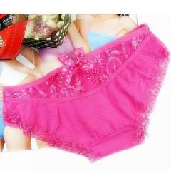 全棉蕾丝无痕镂空蝴蝶结性感公主内裤\女士三角裤-玫红色