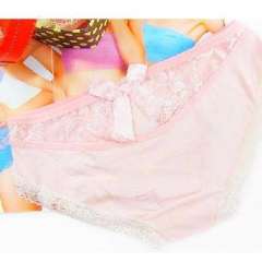 全棉蕾丝无痕镂空蝴蝶结性感公主内裤\女士三角裤-粉色
