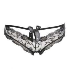 全棉蕾丝无痕镂空蝴蝶结性感公主内裤\女士三角裤-黑色