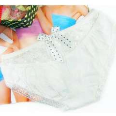 全棉蕾丝无痕镂空蝴蝶结性感公主内裤\女士三角裤-白色
