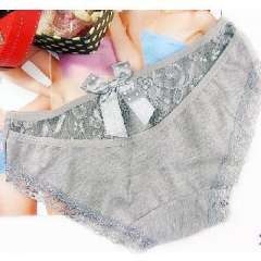 全棉蕾丝无痕镂空蝴蝶结性感公主内裤\女士三角裤-灰色